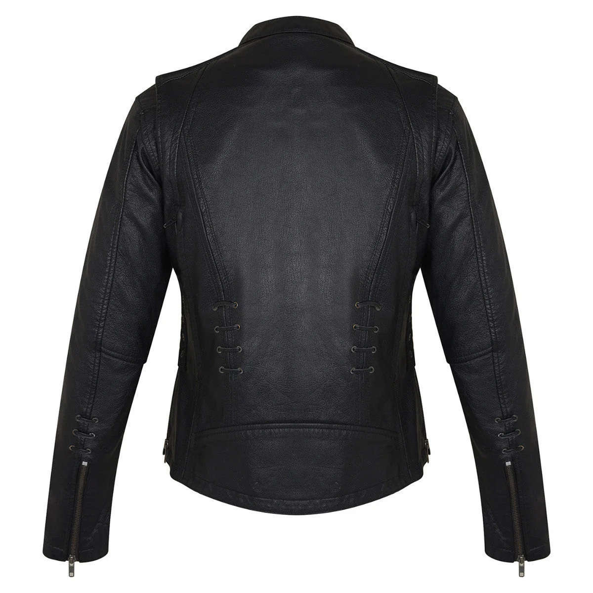 High Mileage HML638B Women’s Lace and Grommet Detail Black Goatskin Leather Lady Biker Motorcycle Fashion Jacket.