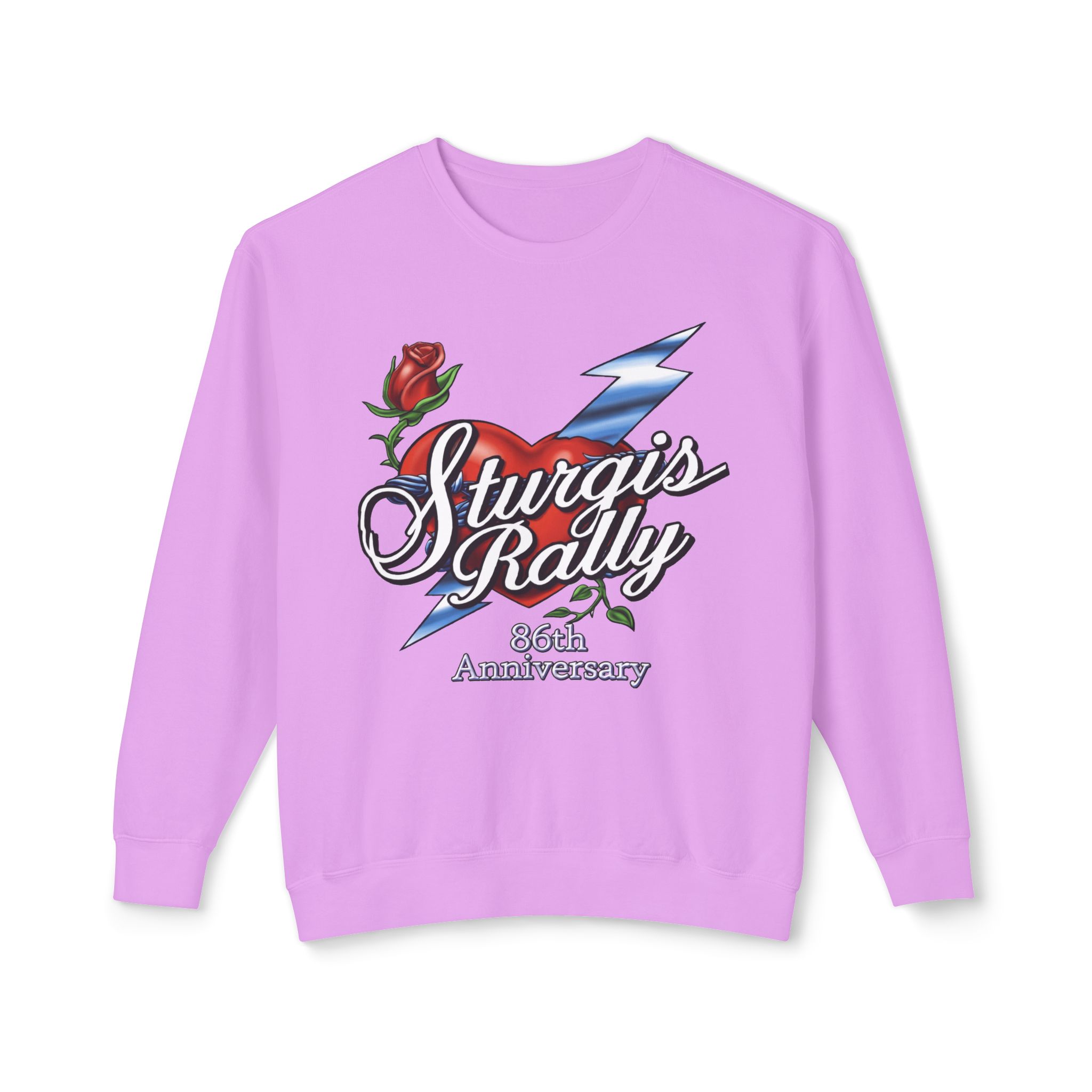 Sturgis Rally, 2026, 86th Anniversary, Heart & Rose, Lady’s Lightweight Crewneck Sweatshirt